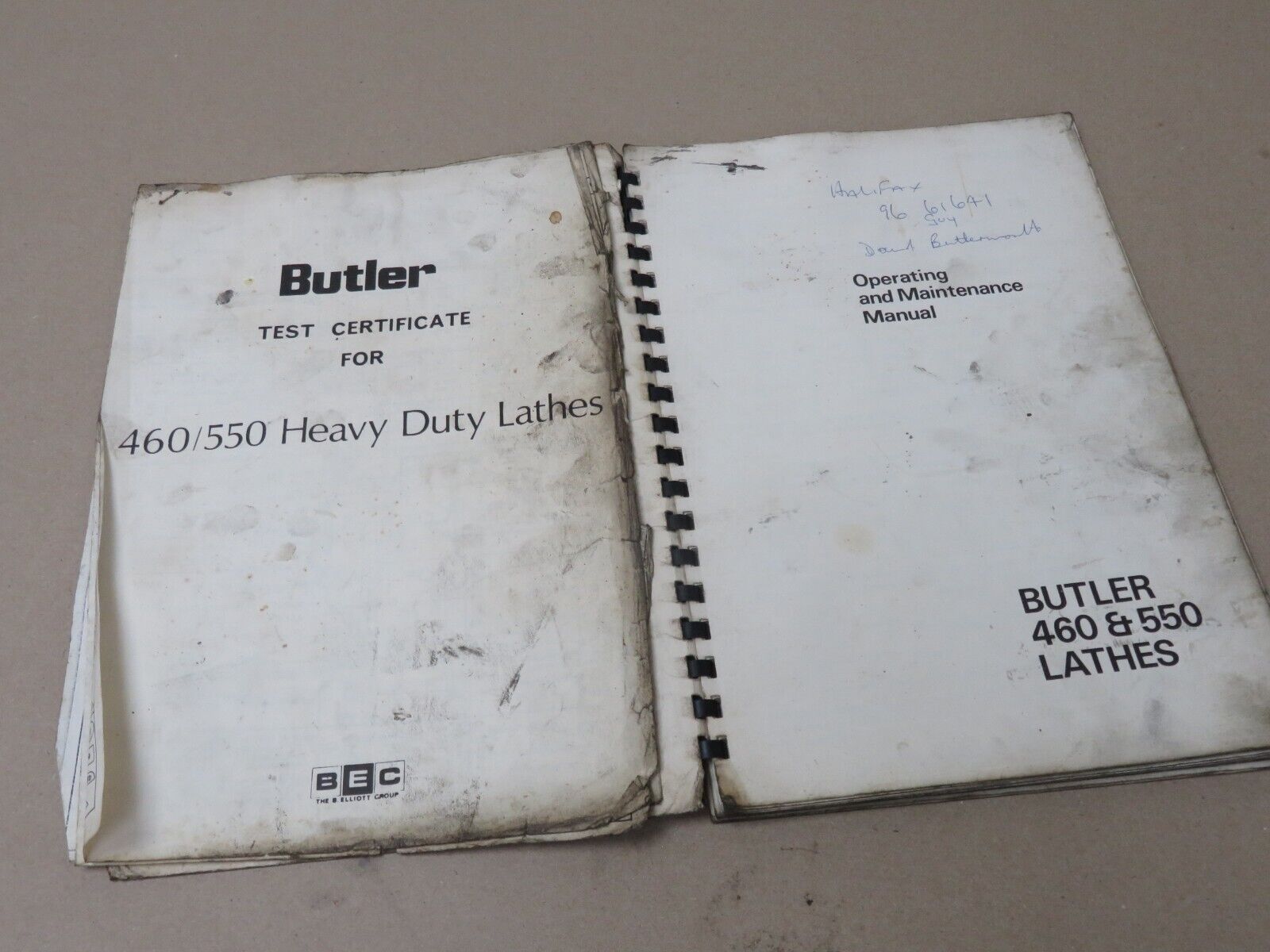 Butler 460 & 550 Heavy Duty Lathe Operating & Maintenance Manual VGC