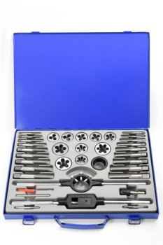 Metric M6 – M24 Comprehensive threading set containing machine ground Taps and Dies in a metal box.