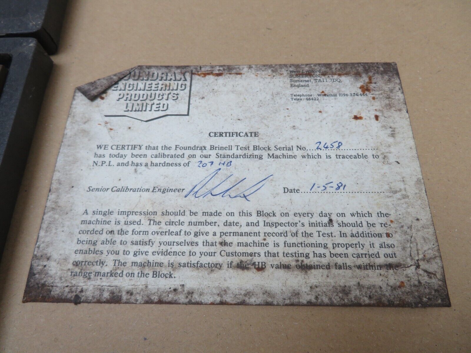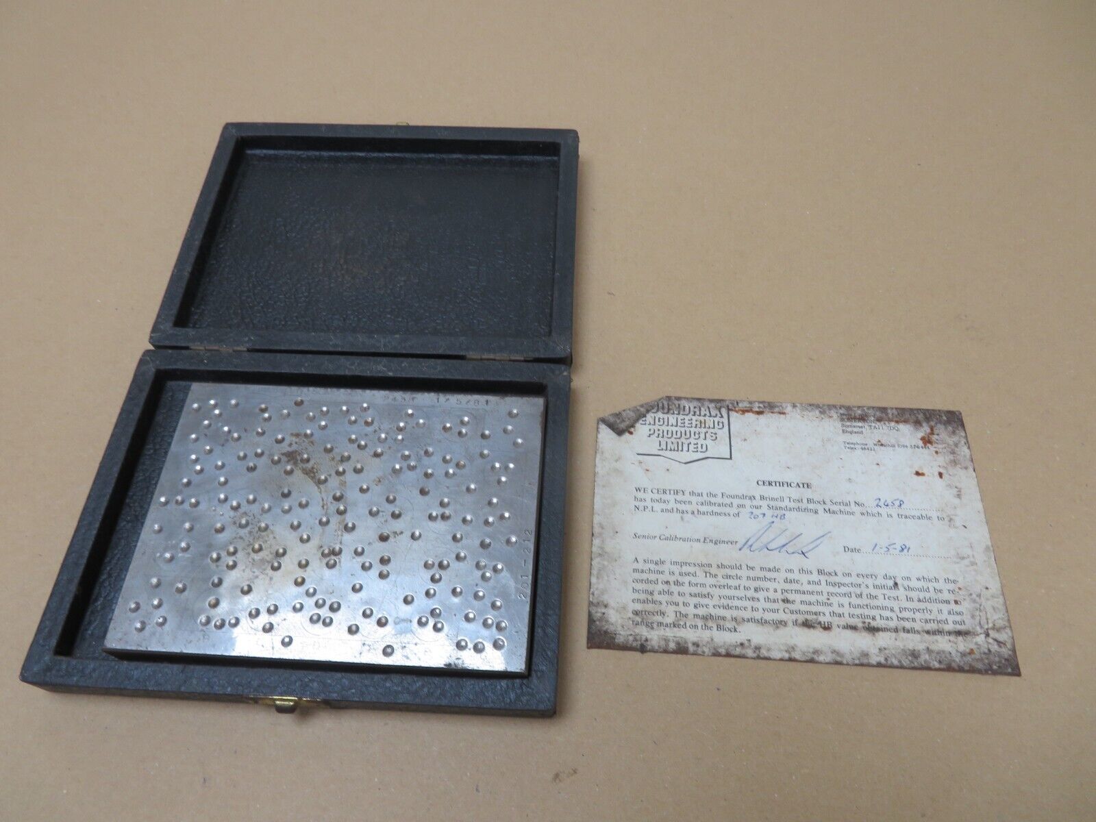 Foundrax Brinell Test Block 207HB For Hardness Tester In Box & Cert ME3654