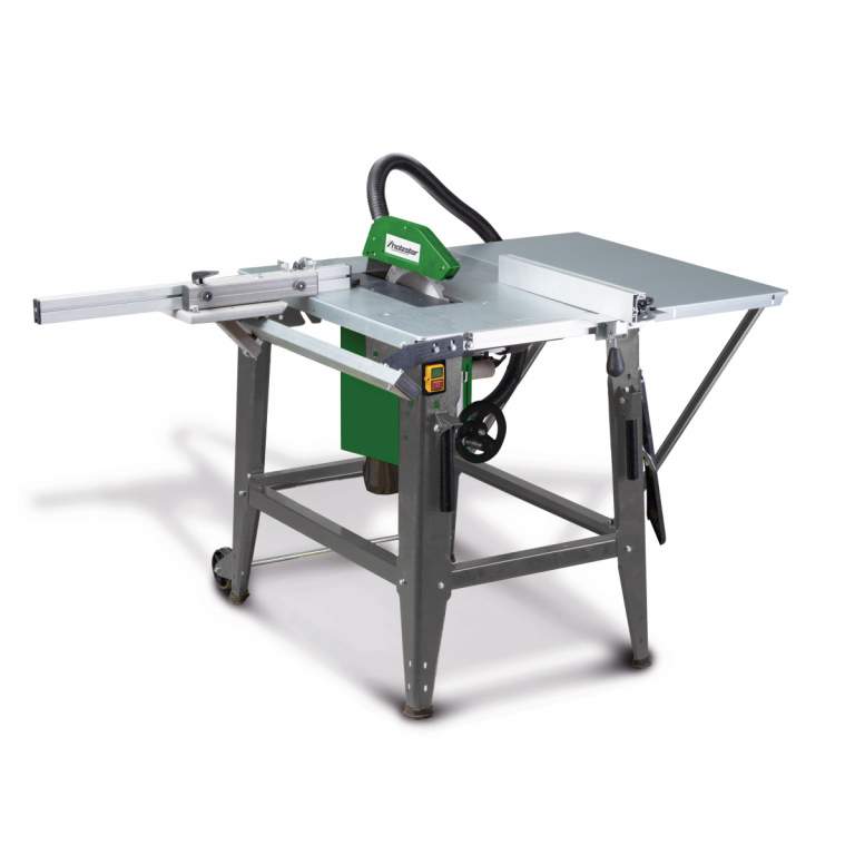 - Carriage with miter gauge or RIP fence