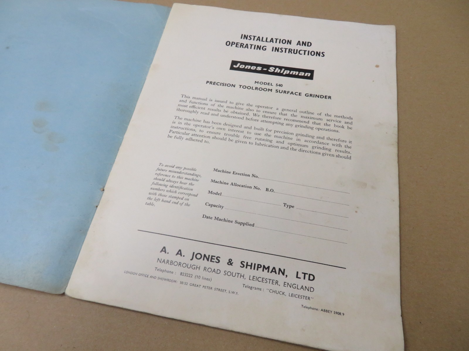 Jones & Shipman 540 Surface Grinder Manual